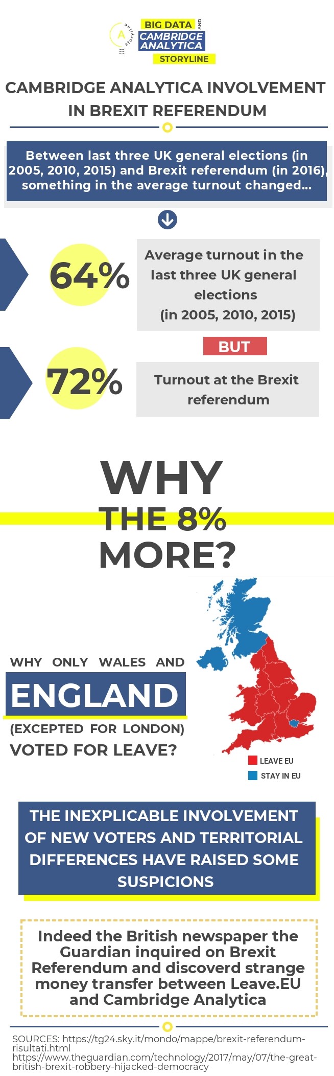 There are substantial evidences that Cambridge Analytica was paid from Leave.EU movement for the collaboration in the political campaign for the Brexit Referendum. In 2017 the Guardian did a long inquiry on Cambridge Analytica and its role in Brexit. According to the Newspaper CA worked to collect data and information on British people to use them to conditionate electors and to make propaganda for the Leave. Moreover the Guardian highlightened strange money transfers between Cambridge Analytica and Leave.EU Committee.