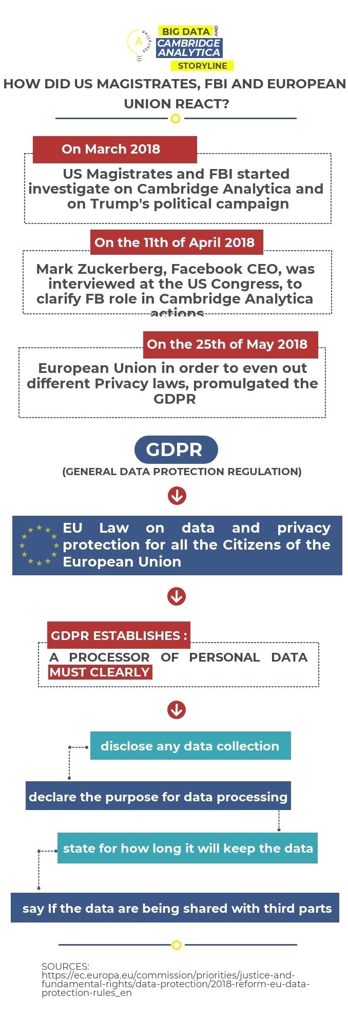 15th May 2018. The New York Times, after two months from the launch of the scandal, revealed that Justice Department and FBI started an investigation on Cambridge Analytica data firm (failed on the 1st of May 2018) . Also many of CA collaborators are inquired or interrogated as witnesses.